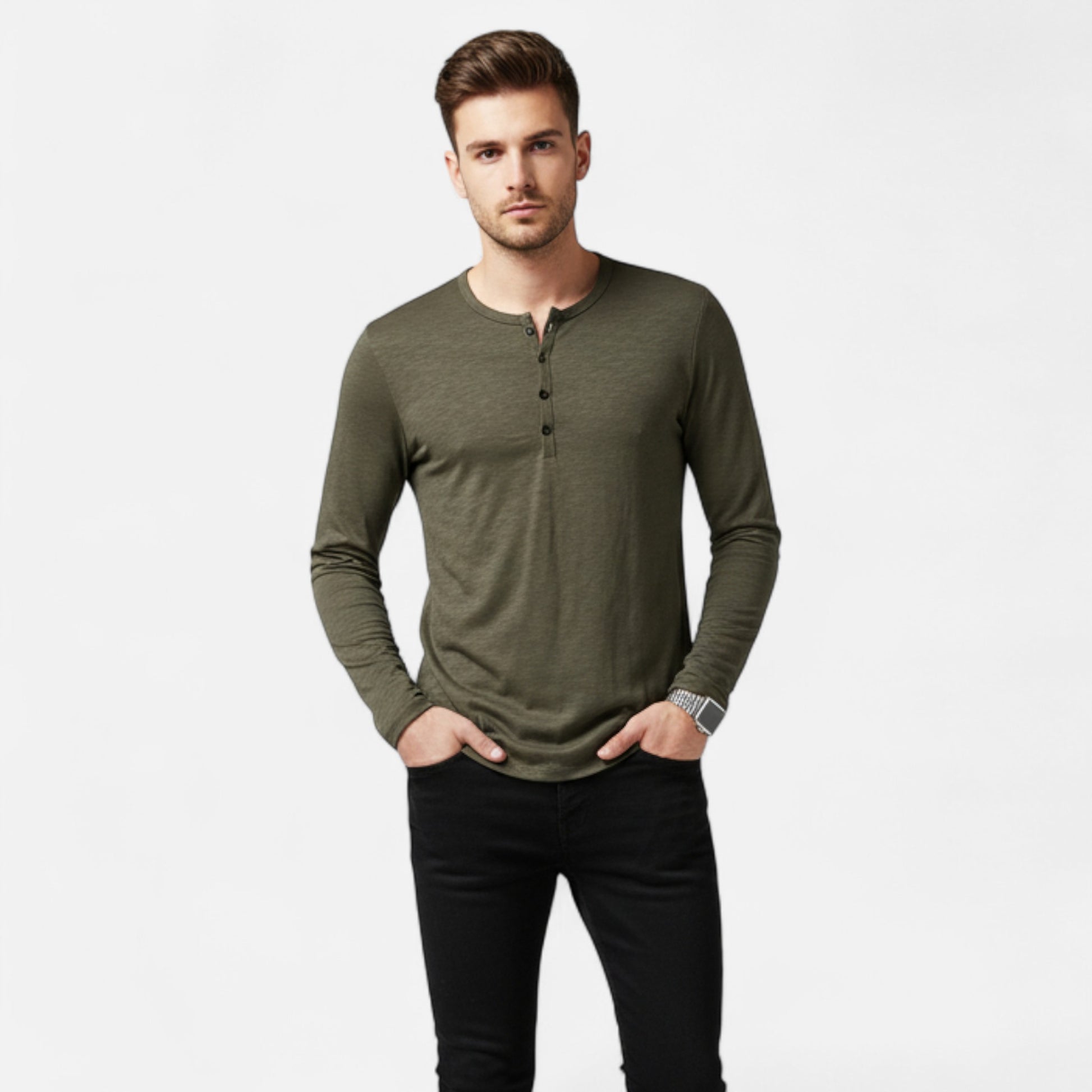 Olivebury | Men’s Long Sleeve Henley Shirt